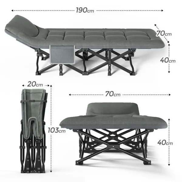 Évitez l’inconfort des sols inégaux et caillouteux grâce à cette couchette qui offre tant de bienfaits. Sa faible taille une fois pliée permet de le ranger aisément dans votre voiture ou à votre domicile. Doté de pieds antidérapants, ce lit se maintient fermement en place, assurant ainsi une stabilité inégalée. Que vous planifiez une randonnée en montagne, un week-end en camping ou une nuit sous les étoiles, ce lit de camping multifonctions est votre meilleur allié.
