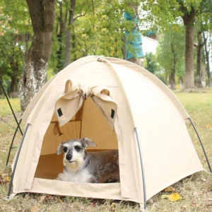 Si vous êtes à la recherche d’un abri confortable pour votre animal de compagnie, choisissez cette tente ronde pour chien. t Fabriquée en polyester coton avec un enduit PVC, elle assure une résistance et une durabilité face aux intempéries. Avec un poids réduit de seulement 1,7 kg, cette tente est facile à transporter et peut être emportée partout, que ce soit pour un voyage ou une simple sortie. Son design élégant, dans une teinte beige neutre, s’intègre harmonieusement dans tout environnement. Polyvalente, elle convient aussi bien à une utilisation intérieure qu’extérieure, garantissant ainsi un abri confortable pour votre chien en toutes circonstances et partout !